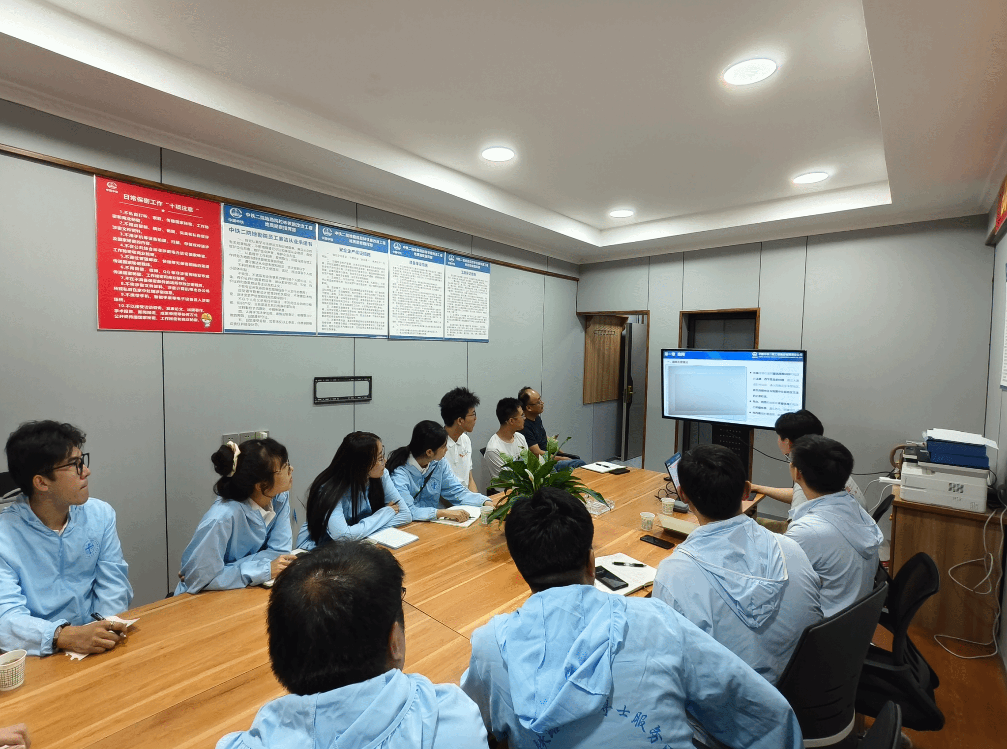 实践首站,博士团直抵高原铁路拉林段建设的“智慧中枢”——中铁二院拉林铁路改造工程地质勘察指挥部。在这里,国之重器的宏图与攻坚克难的细节震撼交织。通过现场座谈与深度交流,博士们系统把握了高原铁路拉林铁路改造项目的最新进展与整体脉络,更深刻体认到工程所面临的极端复杂地形地质、脆弱生态环境保育、集中技术难题攻关等世界级挑战。一张张精密图纸,一份份科研报告,一条条详实数据,不仅刷新了他们对工程规模与技术难度的认知,更成为校准自身研究方向的“导航仪”。服务团成员、环境工程博士生安官平在调研笔记中写道:“听完项目负责人的介绍,那些书本上的理论瞬间‘活’了起来。更加明确了自己的研究如何服务于国家迫切需求,特别是在重大工程的环境效应模拟与调控方面找到了精准的落脚点。”实践为博士们架起了连通学术殿堂与国家需求的坚实桥梁。