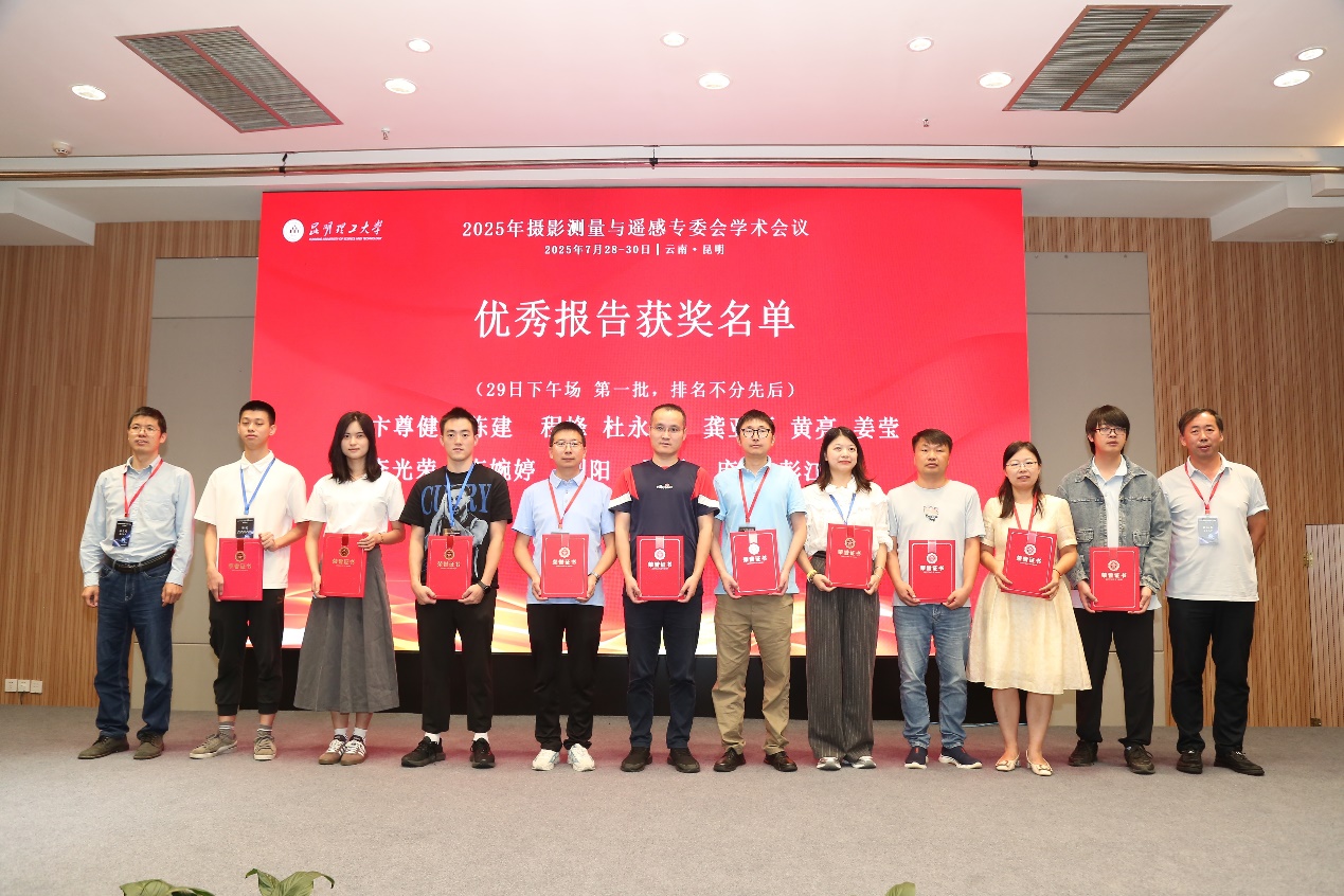 2025年7月28日至30日,摄影测量与遥感专业委员会学术年会在云南昆明举行。在全体大会环节,胡翰教授受邀作题为“倾斜摄影测量与实景三维中国建设”的大会特邀报告。在分论坛环节,朱庆教授担任“倾斜摄影与实景三维”分论坛主席,胡翰教授担任该分论坛召集人。会上,我院师生做了多场前沿研究成果的分会场口头报告:胡翰教授汇报了“几何图像可微渲染的真实感三维重建方法”,博士生姜莹汇报了“顾及不规则振动补偿的隧道检测系统中LiDAR-相机外参自标定方法”,并获“优秀报告奖”,博士生郭威汇报了“基于地形差异感知的高精度多视角卫星影像地表高度估计”,硕士生张晋博汇报了“用于大尺寸遥感影像语义分割的非对称Mamba-CNN协作架构”。