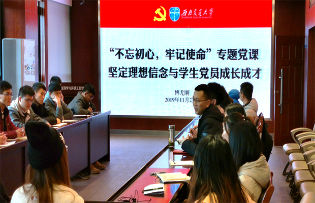 活动伊始,傅尤刚以“坚定理想信念与学生党员成长成才”为题,向各位支部书记讲解了如何切实提升研究生党支部书记的政治素养和业务能力。傅尤刚从个人理想、国家理想与党的最高理想之间的关系为切入点,结合个人学习、工作经历,要求各位支部书记应坚定理想信念,并将个人理想信念融入到党的建设中,融入到中华民族伟大复兴的征程中。