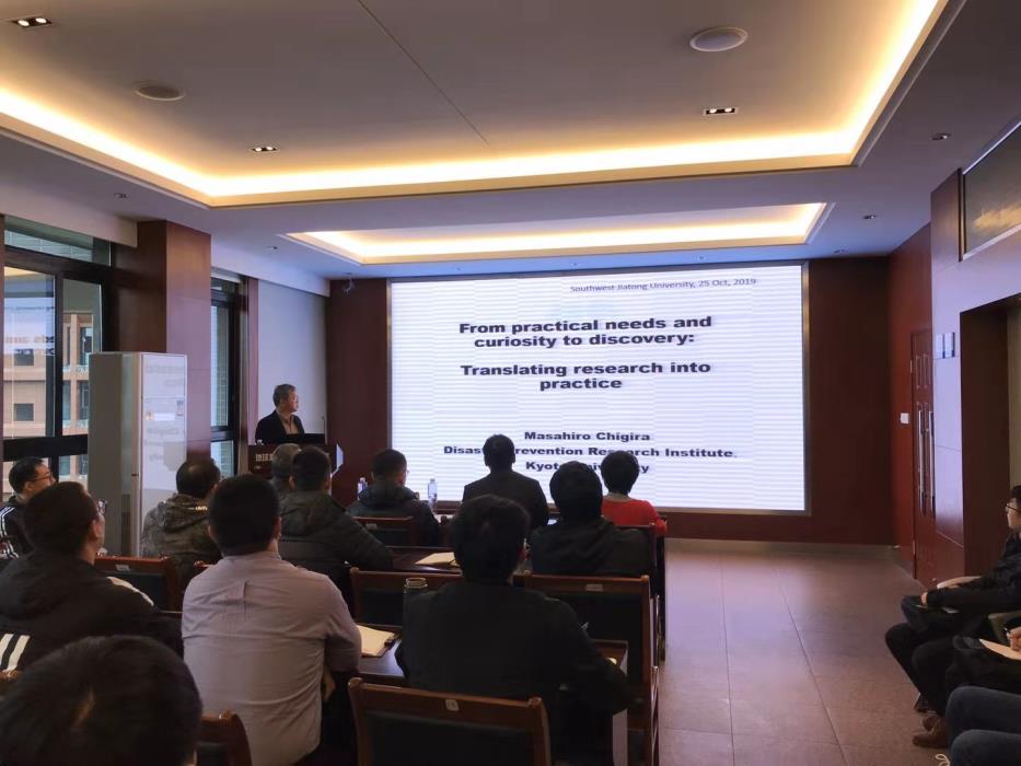 2019年11月25日下午,应我院地质工程系副教授廖昕邀请,日本京都大学防灾研究所山地灾害环境研究室主任、地学顶级期刊《Engineering Geology》编委千木良雅弘教授于我院进行学术讲座。讲座由地质工程系主任巫锡勇教授主持,四川大学助理研究员赵思远以及我院地质工程系多名青年教师与硕博士研究生参加。