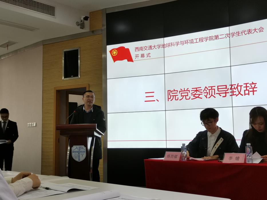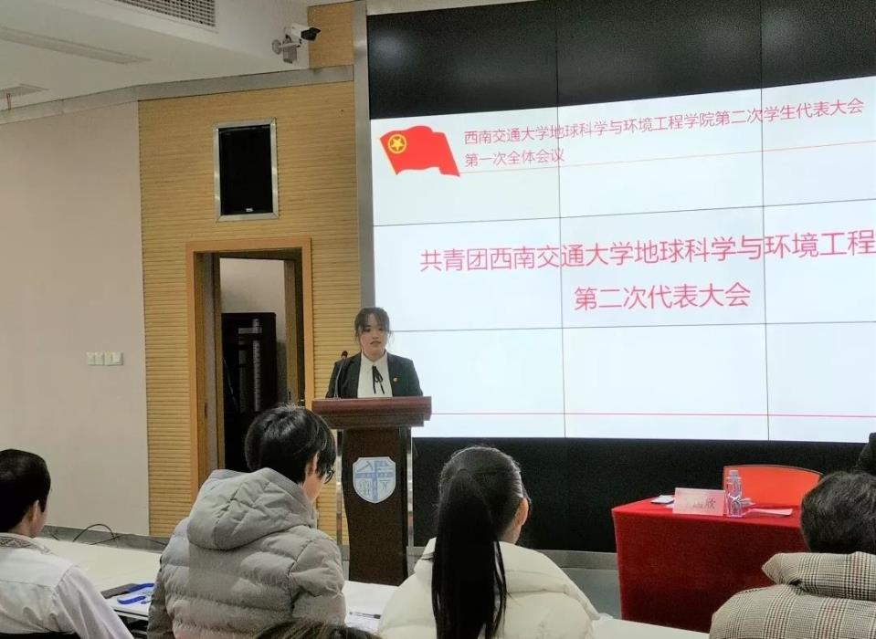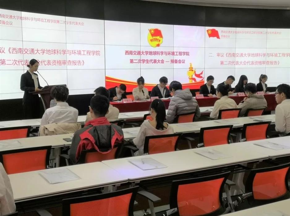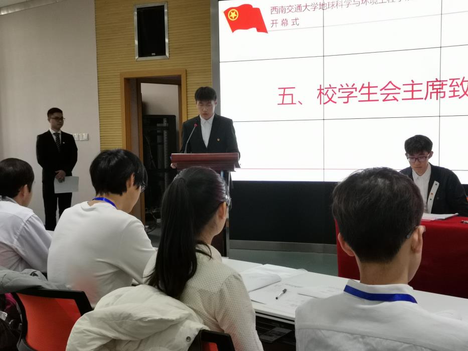 地球科学与环境工程学院第二次学生代表大会第一次全体会议。宣读《每日大赛