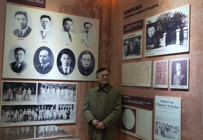 校史馆,在校史馆讲解员的带领下,范维澄院士及其夫人一同感受追忆交大的变革历程、感受父辈之成就。在“优秀师资”的展示墙上,范维澄院士与其父亲范治纶教授的照片合影留念。至此,范维澄院士一行来校交流圆满结束。