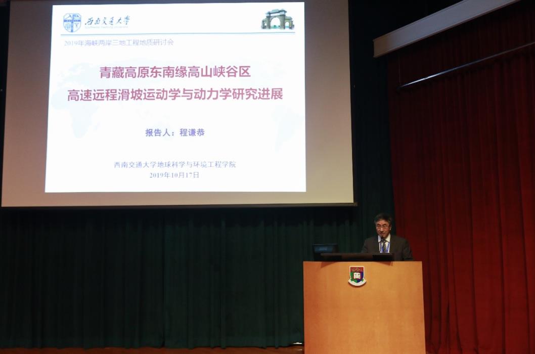 我院程谦恭教授全程参加了研讨会,并受香港地质学会专业部主席张志徳教授邀请,在大会上进行了长达40分钟的主旨演讲(Keynote Presentation);同时,还作为分会场主席主持了学术报告。