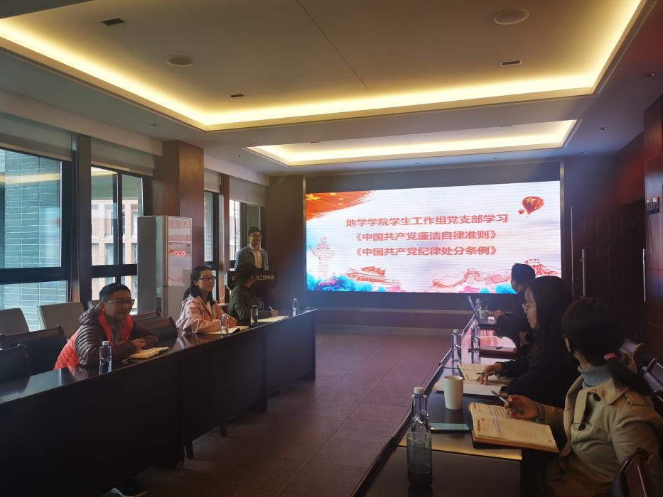 学生工作组党支部于4520开展《中国共产党廉洁自律准则》和《中国共产党纪律处分条例》主题学习研讨会。本次会议由何江老师主讲。
