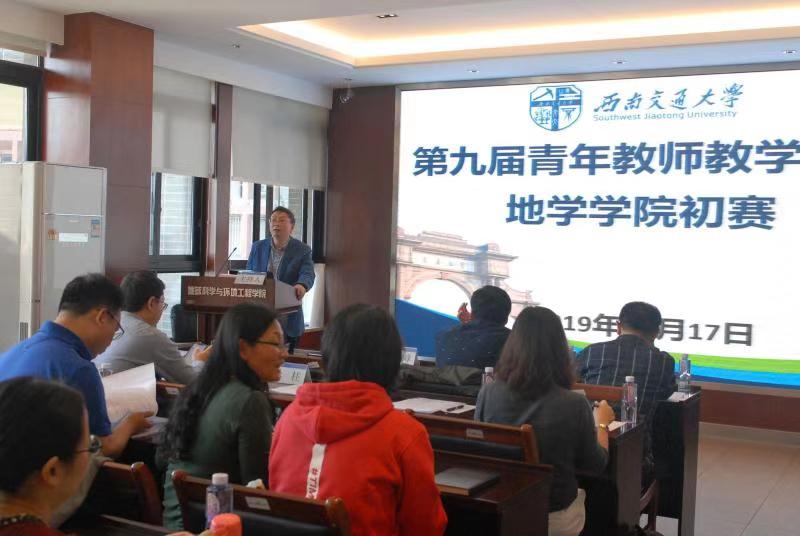 初赛活动。我院符合参赛条件的青年教师除去因公、出国和参加行业教师大赛外,有10名教师报名参加了。本次初赛按参赛课程将参赛青年教师划分为地质组、测绘遥感信息、环境和消防组等四个组,由院党委关秦川书记,张献州、赵晓彦、范美坤、龚正君4位教授和主管教学系主任彭道平、宋广瑞担任评委。欧阳峰和龚正君教授分别主持。