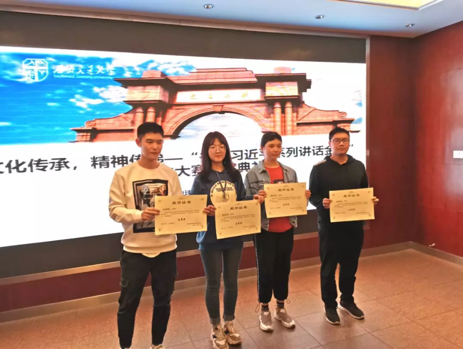 10月18日晚19:30,“文化传承,精神传递”书写习近平系列讲话金句书法大赛颁奖典礼在X4520举行。出席嘉宾有:学生会指导老师李国欣,地学学生会主席严榆凡,副主席潘越,副主席黄镜。