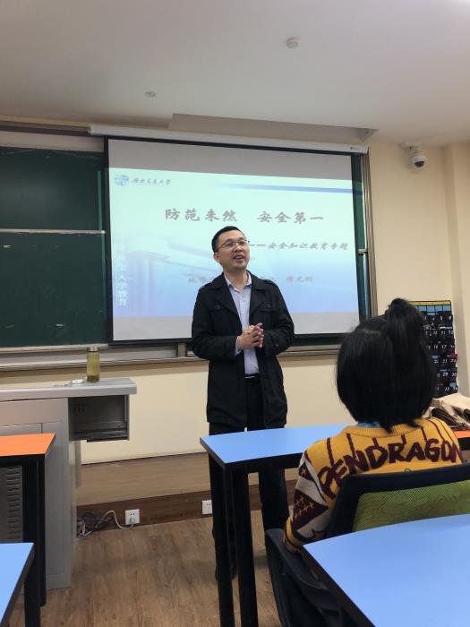 其次,傅尤刚开展主题为“防患未然,安全第一”的安全知识教育,通过结合一系列生动事例,从人身安全、心理安全、财产安全、网络安全、消防安全、防震安全等多方面进行讲解。他告诫同学们,要把生命放在第一位,在外出时时刻防止人身伤害。注重心理建设,遇到问题,及时通过正确渠道,有效合理排解心理压力。树立防盗、防骗意识,做到“六个一律”,坚决抵制校园贷。切记网络并非法外之地,不要发表、评论、跟帖被动不利、影响恶劣的言论。作为安全工程的学生,更应做好消防安全工作,严禁使用违章电器。宽慰外地新生不要害怕地震,遇震切忌慌张,避难时注意保障生命安全,保护财产物品。