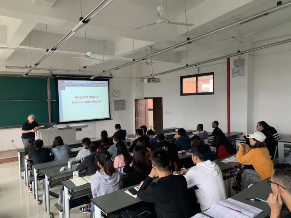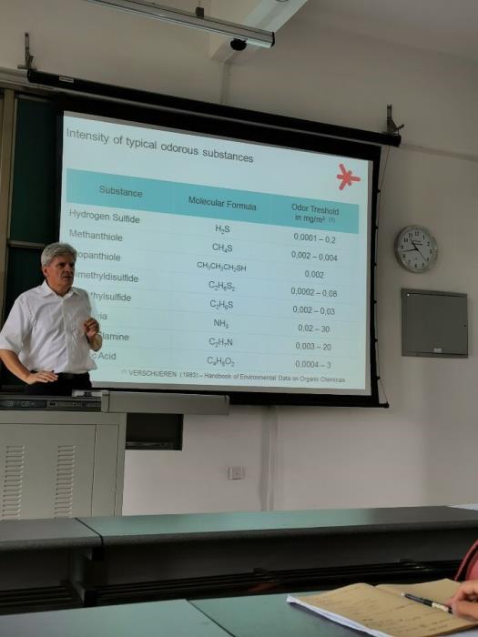 访问期间,Sabo教授和Fischer教授分别为我院学生举行了一系列的学术讲座及学术交流。其中,Sabo教授讲授了臭气净化领域的理论和技术,包括“欧洲和德国的污水处理厂异味排放处理现状”、“有机废气污染治理”等;Fischer教授以“欧洲和德国的医疗废弃物处理现状”和“欧洲和德国的MSW管理”为主题,介绍了德国在固废处理特别是医疗废物方面所付出的努力和取得的成果。此外,Sabo教授和Fischer教授还到环境馆外实验室参观,并与师生代表进行深入探讨,以期在人才培养、科学研究等方面展开更多的合作。