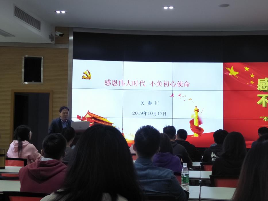 关秦川从三个方面深入浅出、生动形象的给同学们上了一堂党课,“回首初心使命,不忘来时路”,“牢记初心使命,不断推行自我革命”,“践行初心使命,不负青春行”。他谈到不忘初心,就是不要忘记党的理想、信念、宗旨。关秦川通过“救国救民、兴国富民、强国福民”等相关事迹,让同学们感受党的发展历程。
