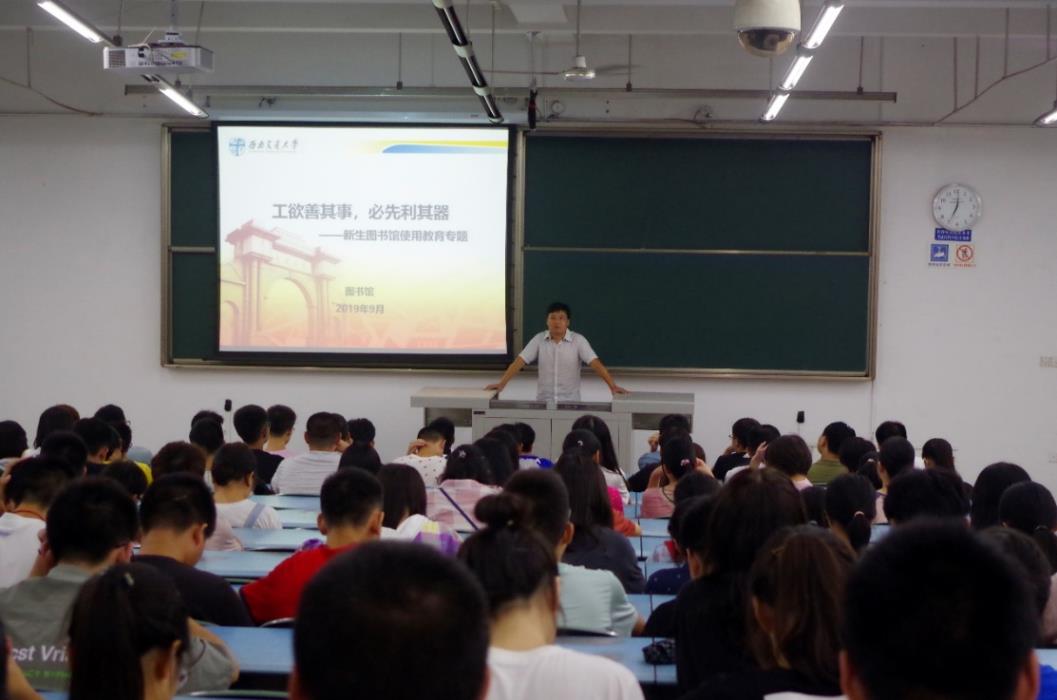 于X2218举办本科2019级环境、地质、资勘专业图书馆入馆教育大会,此次大会由图书馆邓发云教授主讲。