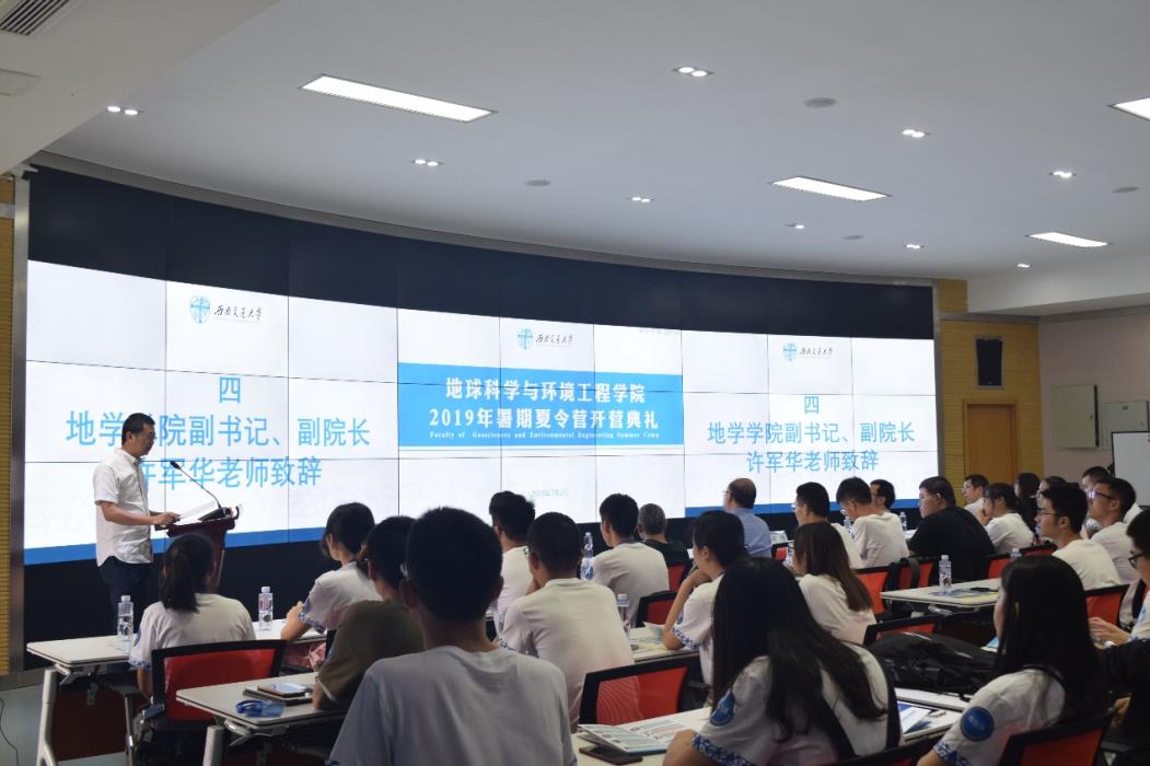 7月1日至7月3日,地球科学与环境工程学院2019年暑期优秀大学生夏令营在犀浦校区圆满举办。7月2日,地球科学与环境工程学院2019年暑期夏令营开营典礼在X4243多媒体报告厅举行。参加典礼的有学院研究生院副院长胡伟,每日大赛