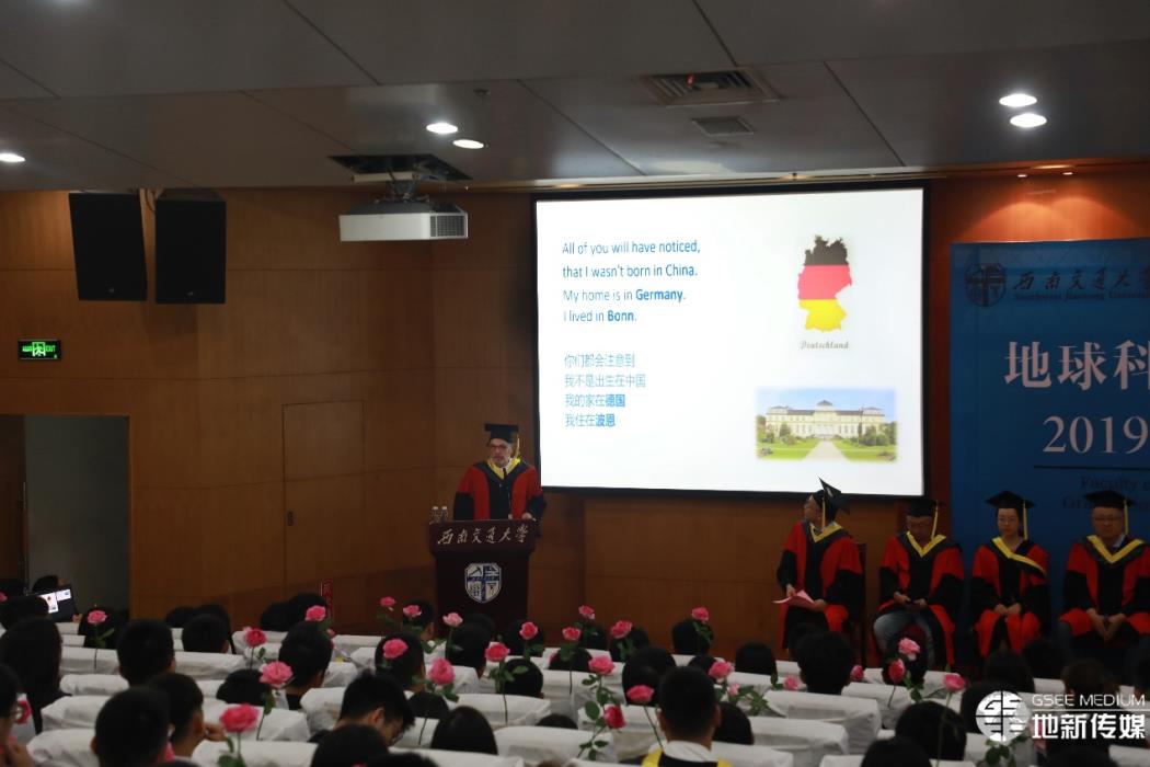 授位仪式正式开始,首先为十二位优秀学生代表授位,由Lutz Plümer为我院2019届本科毕业生优秀学生代表授予学士学位。他们分别是:杨乐、郝建龙、文强、杨国辉、宋梓荣、陈淑娴、冯勃、任百万、游继钢、刘桓、谷思文、周志钻。