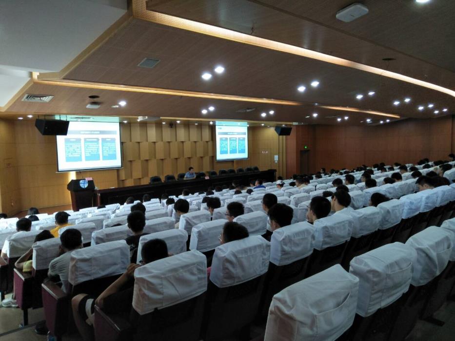 副院长胡卸文教授主持,中国产学研合作促进会党委委员刘玉强主讲。学工组辅导员及本科生等参与本次大会。