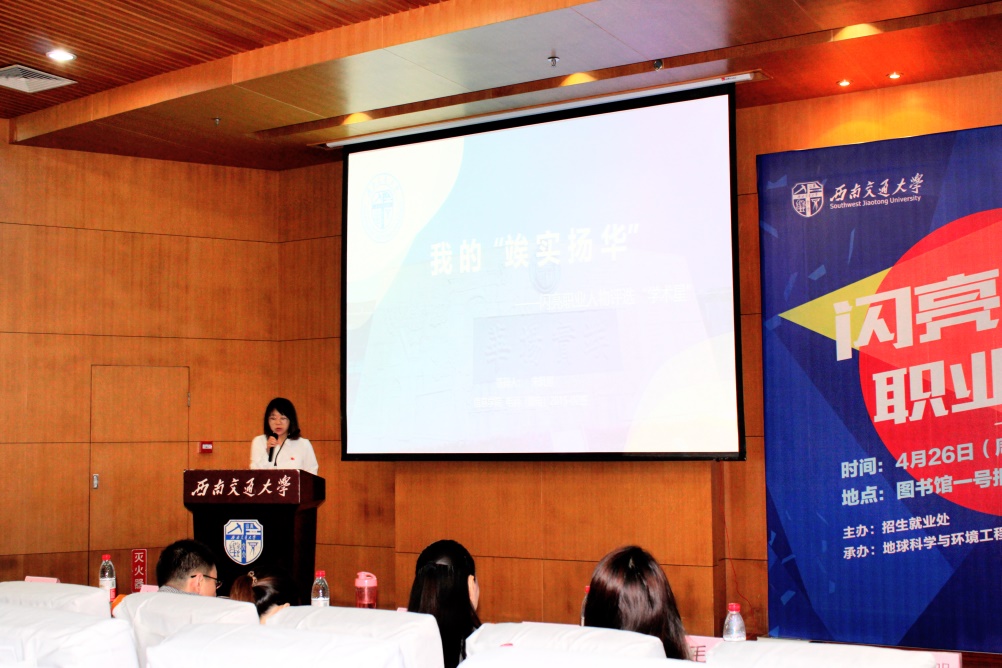 活动伊始,彭黎明老师上台致开幕辞。彭老师首先对到场参加活动的老师、同学以及在场的工作人员都表达了感谢,对各位准毕业生表达了祝愿。之后,彭老师以“选择”为主题做了简要讲话,她讲到“我们每一刻都在选择,或许它十分微小,但是我们不知道哪一次选择会给我们带来改变,让我们认真地选择,勇于探索,不断尝试,找到属于自己的美好未来”。