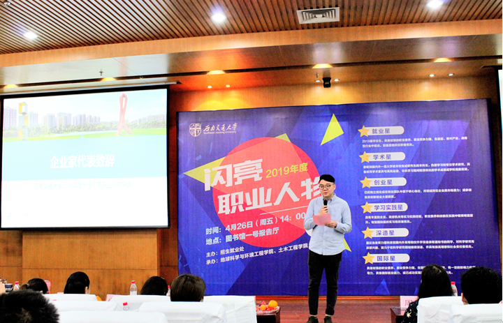 随后,企业家代表刘晋熙先生也发表了致辞,他说道:“青年强则国强,作为教育机构的老师,我与很多交大的同学有过接触,今天能够认识这么多在不同方向上有着骄人成绩的优秀同学,我感到非常荣幸,甚至可以说感觉到一种希望和力量”,同时,刘先生也表达了对我校学子的高度赞扬以及对我校教育工作的肯定。