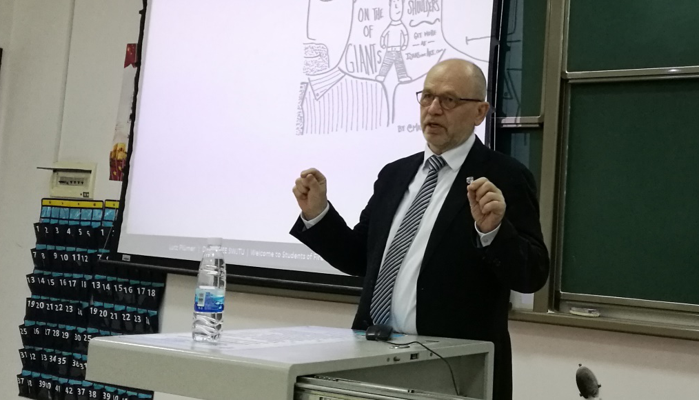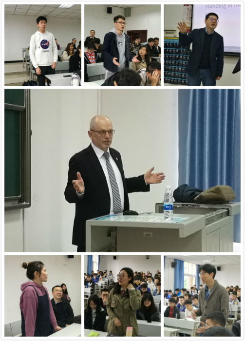 讲座伊始,Lutz Plümer以自己生活为切入点,与同学们分享了他对教授这一的角色的理解、介绍了成功的6个关键因素,并殷切地希望同学们能够厘清知识和能力的关系,鼓励同学们要有自信、不要害怕失败。在接下来的师生互动环节,同学展现出极大的自信,勇敢的用英语与Lutz Plümer教授进行了深入交流。