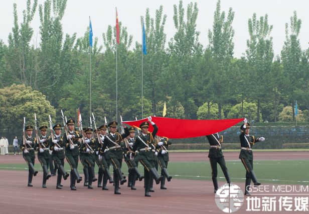 染粉黛,被和风,岁月向暖暗香浮动中,校运动会开幕式于上午8:30浩大开始。伴着浑厚嘹亮的校歌,裁判员和嘉宾进入体育场,国防生们高举旗帜护卫其后。在主持人动情地解说下,早已在艳阳中静候的各机关、学院代表方队踏着激扬的节拍,向中心体育场聚拢。