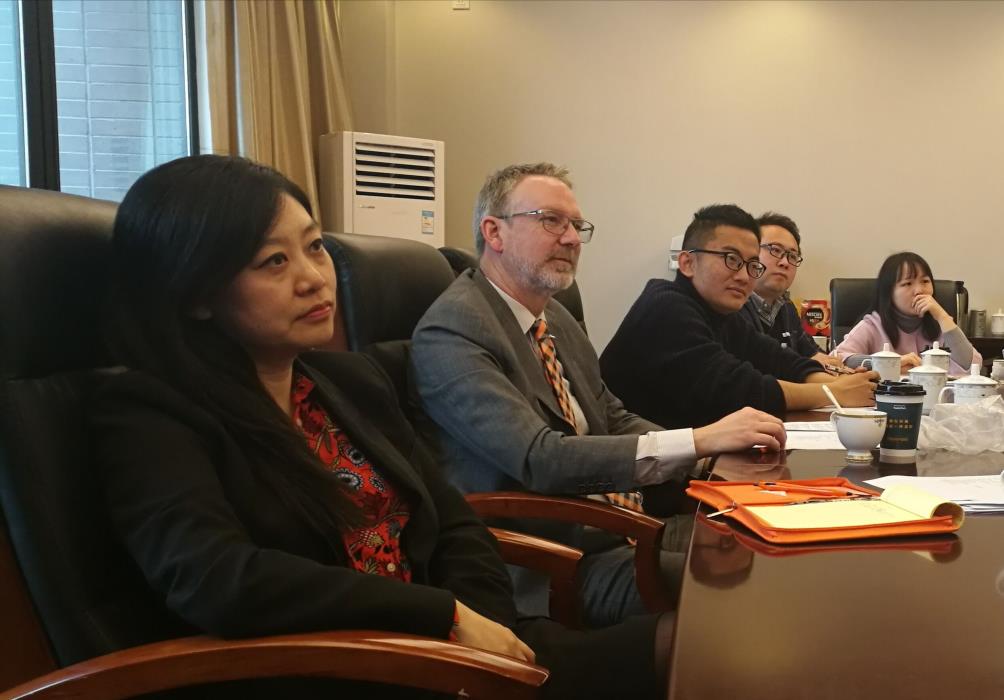 2018年3月21日上午,美国俄克拉荷马州立大学全球研究与伙伴关系学院院长Randy Kluver、中国发展部经理Vivian Wang一行来访每日大赛