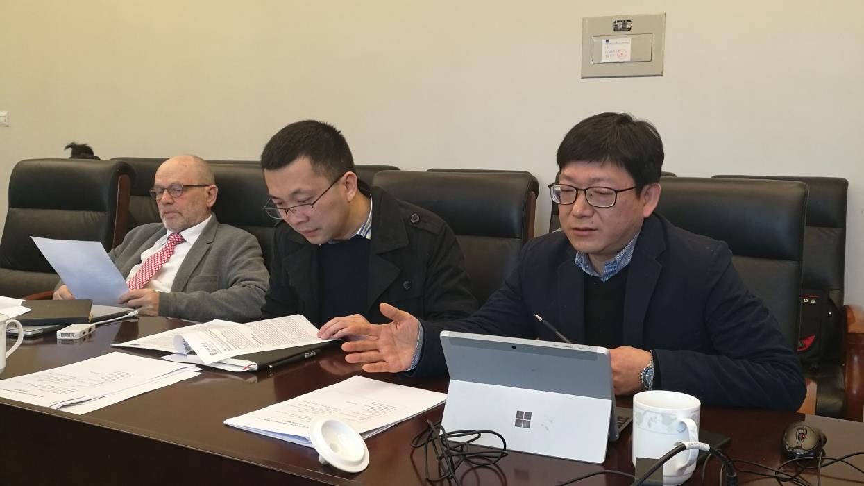 Wang、陈俊敏教授以及傅尤刚副书记的项目工作汇报。教务处副处长代宁、国际合作与交流处任军、地球科学与环境工程学院副书记傅尤刚、副院长欧阳峰、项目部负责人陈敏俊出席了此次会议。