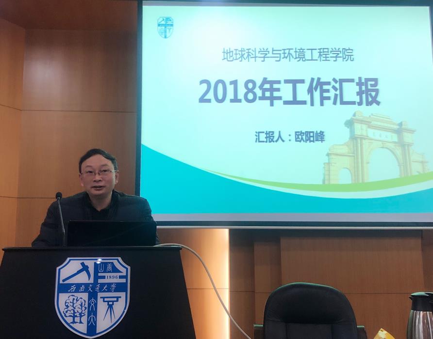 2019年1月3日,地球科学与环境工程学院于图书馆二号报告厅召开2019年第一次全院教职工暨中层领导干部述职大会,参加会议的有学院党政领导班子,全体教职工。大会由学院党委书记王齐荣主持。