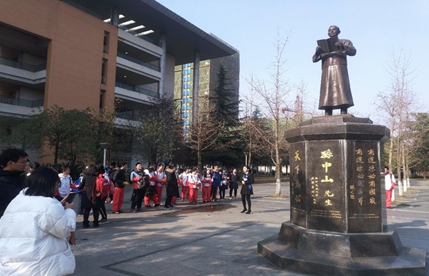 随后,师生一行沿人文中轴线依次对竢实扬华碑、中山先生铜像等进行了参观。在参观过程中,同学们对交大的悠久历史有了更全面的认识,并对与交大关系密切的前辈们的事迹与精神有了更深入的了解。