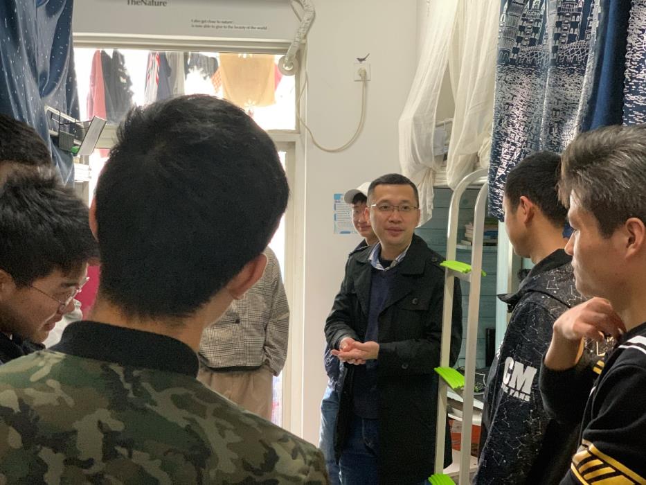 在走访过程中,同学们对于老师的到来表示了热烈的欢迎。傅尤刚认真询问了学生的近期生活学习安排,着重检查寝室的用电安全、卫生等情况。检查发现,大部分寝室都做到干净整洁,只有个别寝室存在垃圾堆放、不关电源、物品杂乱的现象。针对此类情况,傅尤刚说到,寝室是学习和生活的地方,一定要注意寝室卫生,寝室干净整洁了,才会有愉悦的心情和舒适的环境,寝室环境要多爱惜。在用电安全方面傅尤刚提出,寝室没人的时候一定要关掉电源,并且插座要远离易燃物品,注意用电安全,杜绝违章电器,消除安全隐患。