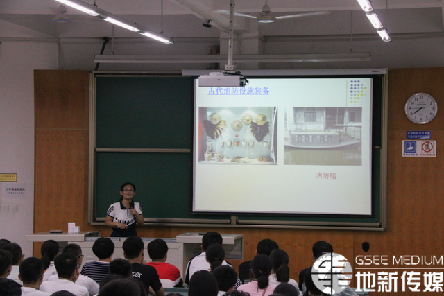 宋广瑞首先追溯了消防的历史,介绍了当今消防的发展,列举了一些现代火灾事故案例。随后,宋广瑞向同学们介绍了现代消防涉及的方方面面领域和我国开设消防工程专业的院校,同时阐述了我校消防工程专业现有的人才培养体系。宋广瑞介绍了本科阶段消防专业的主干课程,同时展示了消防专业学习过程中丰富多彩的校外实践活动,侧重介绍了我校的消防专业实验室、当前的科研项目及国际交流情况。
