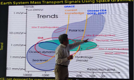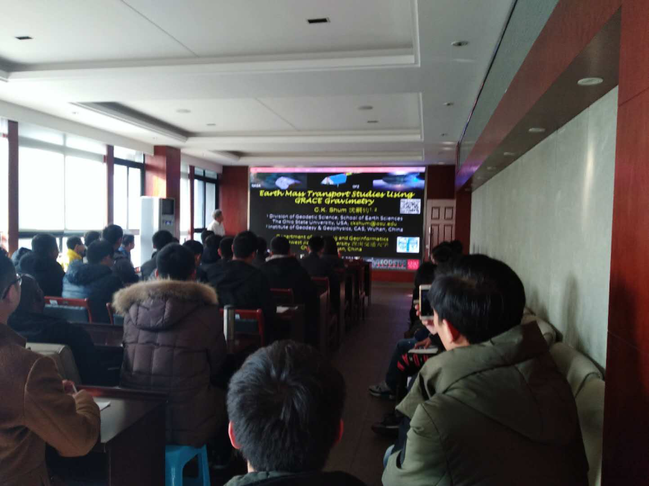 报告会上,Shum介绍了俄亥俄州立大学在卫星重力测量及其在地震位置确定、地下水位变化监测、雪储量变化监测、水储量变化监测、干旱和洪水监测等方面的最新研究成果。双方就研究生培养模式和进一步合作事宜进行了探讨和交流。报告后,Shum教授与现场师生进行了互动交流。Shum教授的报告以大量的动画来展示,令人耳目一新,展示了国际前沿研究进展,对我校师生科研水平的提高和国际视野的拓展具有非常重要的指导意义。