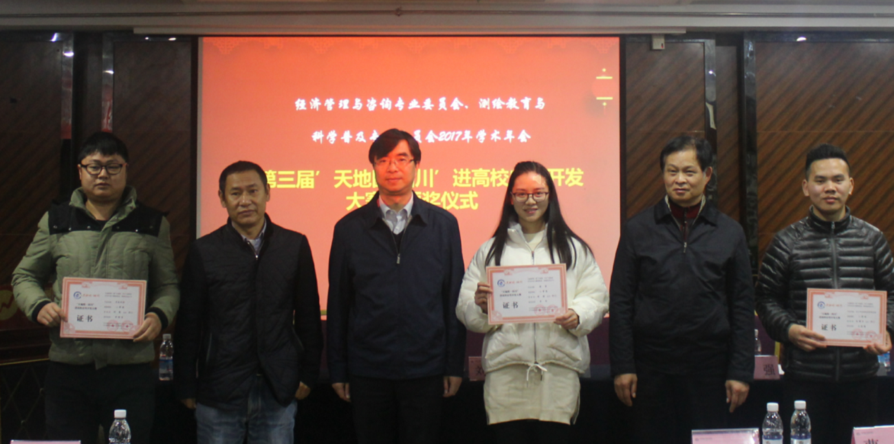 地球科学与环境工程学院院长刘国祥和副院长齐华。在决赛中获得一、二、三等奖的优秀参赛小组代表参加了颁奖仪式。出席“2017‘测绘经济管理与咨询专业委员会’、‘测绘教育与科学普及专业委员会’学术年会”的60余位代表见证了颁奖。