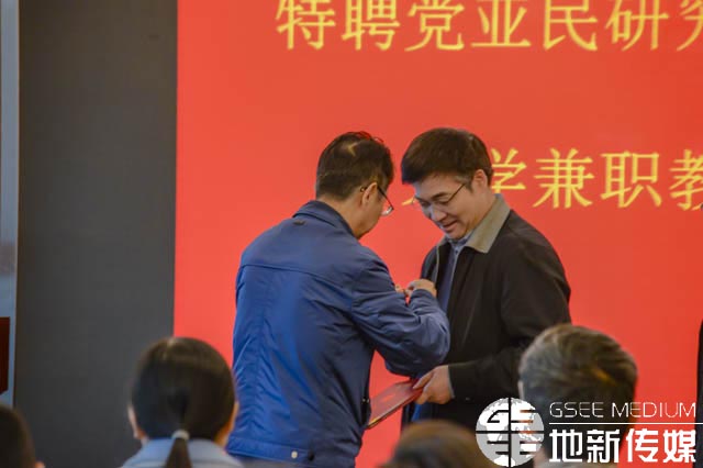 首先,刘国祥介绍到场的各位嘉宾,并隆重介绍了党亚民的个人履历。随后,由蒲云为党亚民颁发聘书,佩戴校徽。
