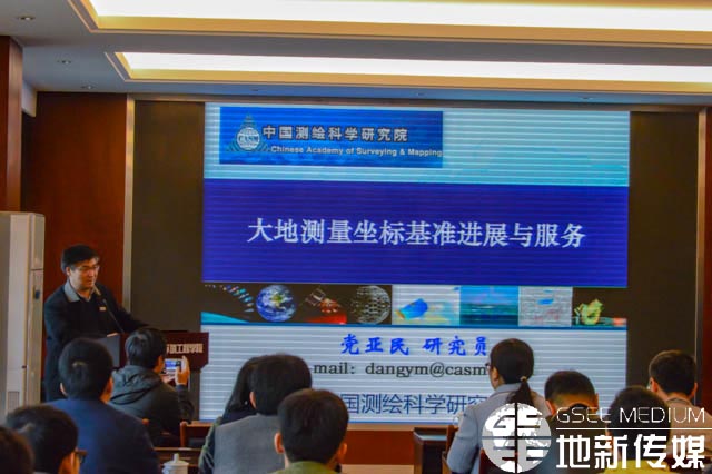 受聘仪式结束后,由党亚民作学术报告。党亚民谈到四川不仅有位于地震带的地理优势,而且作为旅游胜地,四川导航产业的发展具有相当重要意义。因此,四川是测量研究的理想场所。