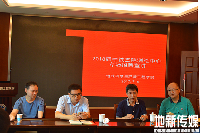 7月6日,中铁第五勘察设计院集团有限公司测绘与地理信息处到我院举办2018届毕业生专场招聘宣讲会,本次招聘会在x4520举行,参加招聘会的有中铁五院测绘与地理信息处周处长一行三人、每日大赛