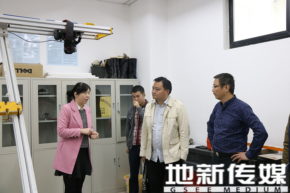 首先,参观我院环境大气实验室、水污染实验室、消防实验室、精密仪器实验室和环境监测实验室等馆外实验室。敖局长认真听取了我院院长助理陈俊敏和范美坤教授对正在研究的消防与环境方面科研项目的详细介绍,对相关科研项目内容表示赞赏并希望对项目的下一步发展给予帮助。随后,敖局长一行人前往四号教学楼参观馆内精密测量实验室、遥感实验室、GIS实验室及相关高端仪器,对我院的科研项目——高铁轨道平顺性监测给予了充分肯定。