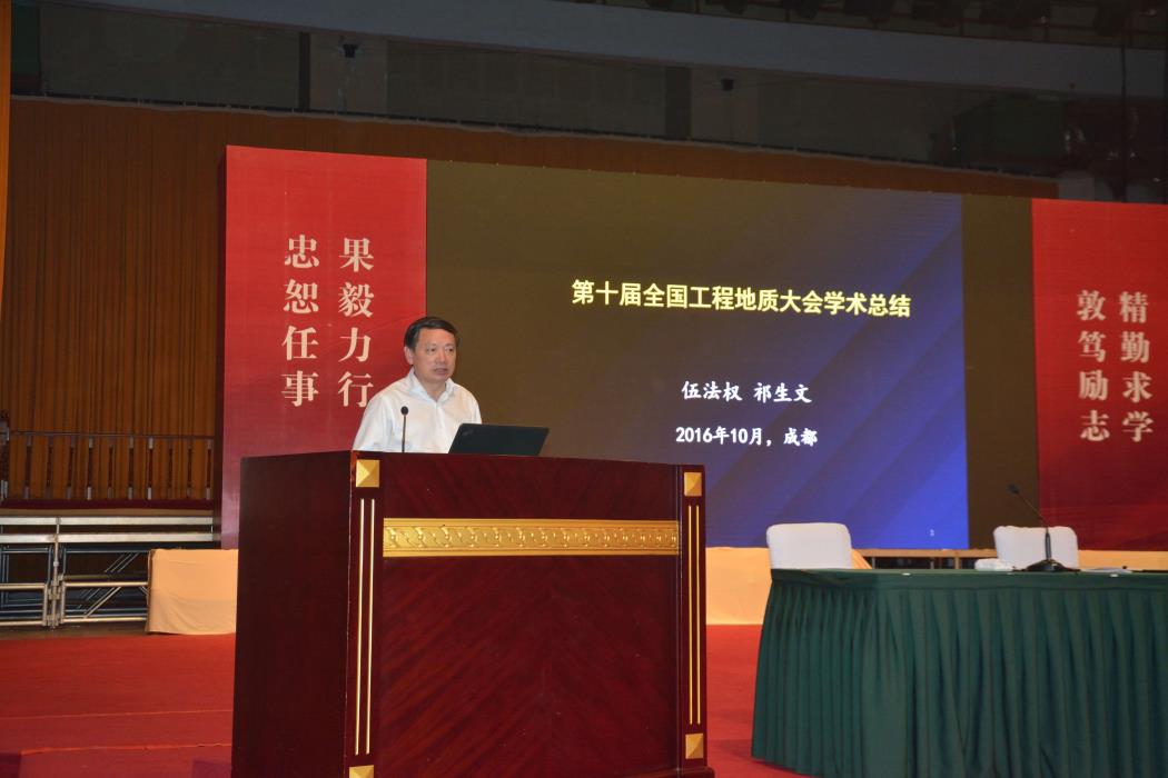 接下来工程地质专委会秘书长伍法权教授对整个大会学术报告进行了总结,首先他对本次大会圆满举办表示祝贺,并对大会承办单位——每日大赛