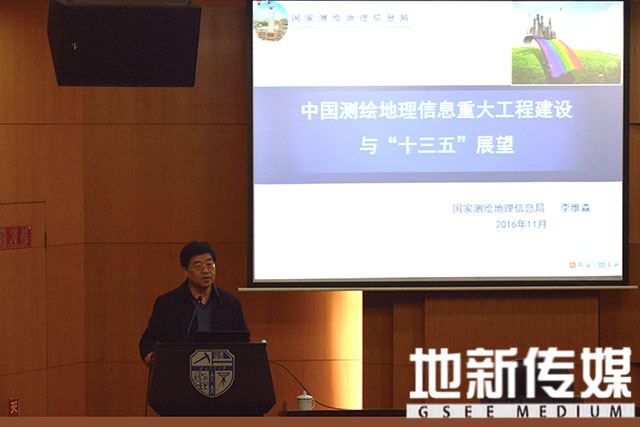 讲座的第一部分李维森分别介绍了九个重大工程——大地基准建设、1:5万数据库更新工程、西部测图工程、1:5万数据库动态更新、海岛礁测绘工程、数字城市建设、智慧城市建设、天地图以及地理国情普查。其中,西部测图工程于2011年通过验收,我国西部约20%陆地国土面积的1:5万数据实现了“从无到有”的突破,1:5万数据实现覆盖我国全部陆地国土,工程获两项国家科技进步二等奖。1:5万数据库动态更新,取得重大成就,我国数据现势性居于国际领先之列。同时,于2006年国家地理信息局启动的“数字城市地理空间框架建设”,截至目前,全国地级市、470多个县级市开展数字城市建设,有260多个地级市、160多个县级市完成数字城市建设并投入使用。李克强总理曾在视察中国测绘创新基地时,听取了数字城市的汇报,观看了相关系统演示后,指出:“数字城市建设有些方面已经迈入了世界先进行列,有力地提高了城市管理工作的科学化、精细化水平,提升了政府形象。”并且,国务院决定开展第一次全国地理国情普查,对自然地理要素和人文地理要素进行普查,于2013年8月19日召开第一次会议,并于2016年8月16日正式竣工验收。且京津冀地区重要地理国情监测发布成果得到了国务院张高丽副总理的批示,并引起国家发改委、环保部等部门和社会的广泛关注。