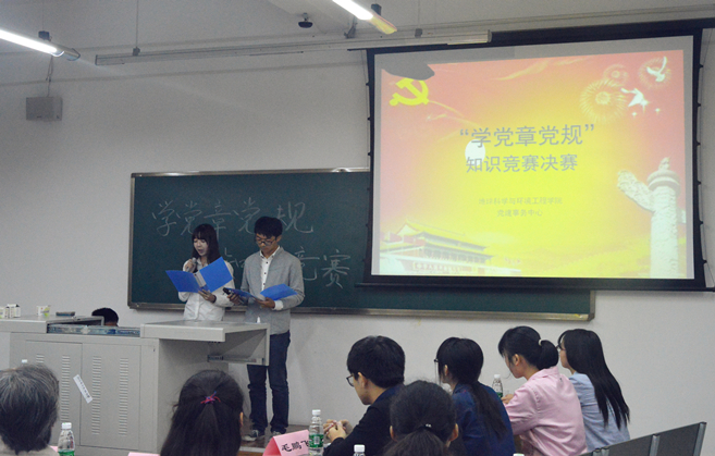 党委主办、党建事务中心承办的“学党章党规”知识竞赛决赛在X9306教室顺利举行。比赛由杨瀚盛、任嘉冰两位同学主持。担任此次比赛评委兼嘉宾的是每日大赛