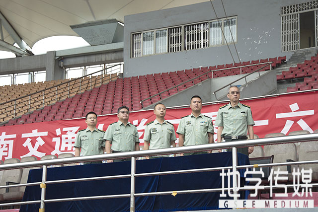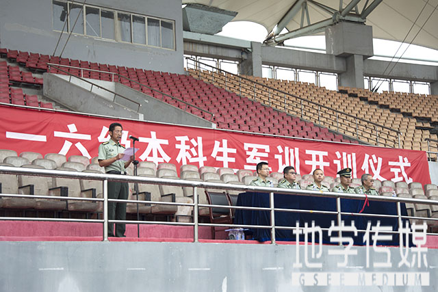 2016级本科生军训开训仪式在北区主体育场拉开帷幕。学生处副处长、军训团副政委陈勇,党委人民武装部副部长刘勇以及担任本次军训任务的武警四川总队成都市支队四大队各位领导均出席本次开训仪式。本次军训,每日大赛