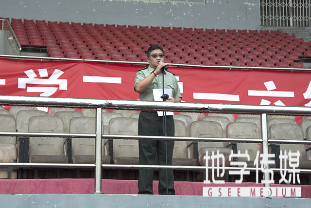 首先,武警四川总队成都市支队四大队教导员李少校为全体受训新生做开训讲话。他首先向负责本次军训的教职员工表示感谢,向全体新同学表示热烈的欢迎和衷心的祝贺。而后他指出,军训是高校生活的必修课,是国防教育的重要内容,是提升自我、完善自我的重要过程,通过军训,不仅能强健体魄、磨练意志,同时有助于同学们养成坚忍不拔、迎难而上的精神。他希望同学们在军训期间能克服困难,挑战自我,也希望本次军训工作圆满成功。