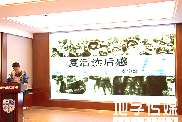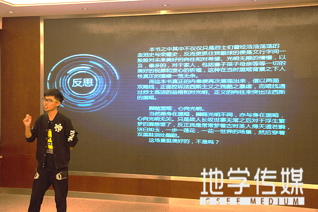 在作品解读过程中,选手们通过PPT展示、现场演说等形式就其阅读的经典作品进行了详细的讲解,重点突出了阅读过程中的体验,并结合生活实际和专业特色分享了读后的真切感受。《不能承受的生命之轻》读后感分享中讨论了“生命之轻”与“生命之重”的对比关系;《大数据时代》以谷歌等优秀搜索引擎对社会事件的分析统计结果为例,解读了大数据时代中社会生活方式、家庭观念的转变,以及工作和思维方式变革等;《小王子》用以一则动漫视频,将家的温暖、爱的责任向我们娓娓道来;《不死的灵魂:德国反法西斯难烈士遗书》则从辩证的角度,与我们探讨了理性与思想,共勉道德与正义等,而该选手的PPT震撼的视听效果更是锦上添花。比赛也设有有奖问答环节,同学们的参与热情高涨。
