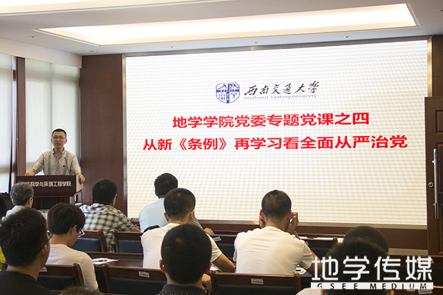 党委“两学一做”专题党课之四---从新《条例》再学习看“全面从严治党”专题学习活动,于犀浦校区4520会议室如期举行。院党委副书记傅尤刚,刘冠军、冯丽梅老师以及我院本——研各年级学生党员代表参与了本次党课学习。