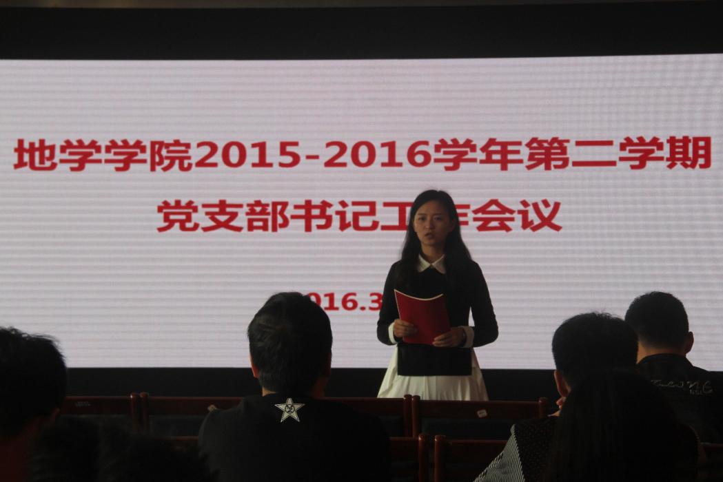 会议上邓老师就入党积极分子选党课、党员组织关系排查、党员发展及主题党员活动进行了布置。她强调党员组织关心排查工作是一项细致而繁琐、但又很重要的工作,希望各支书加以重视,为今后学院的党员管理工作做好榜样。
