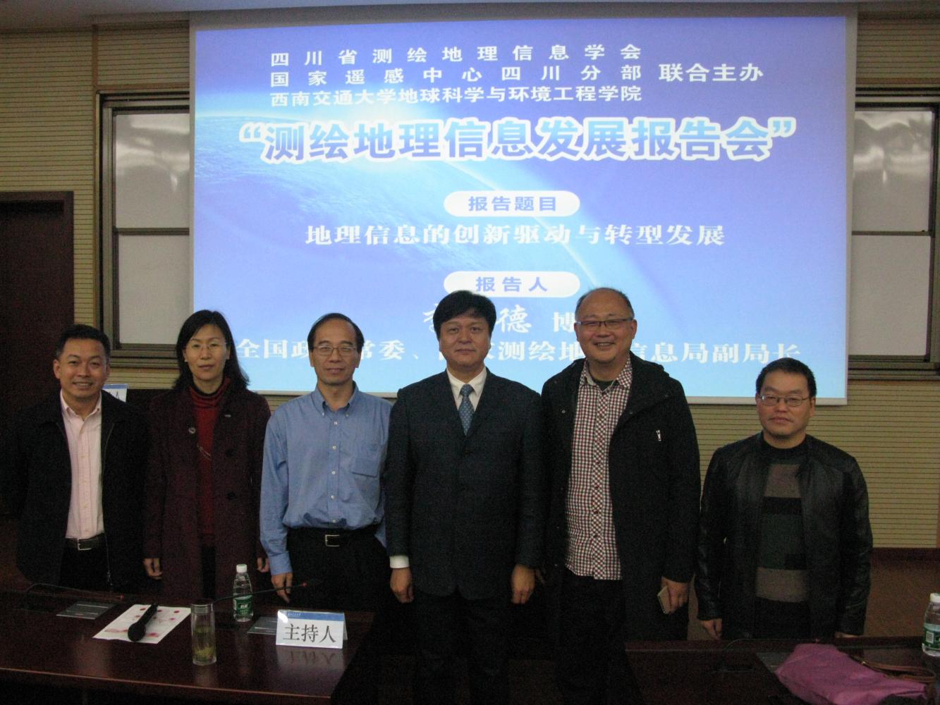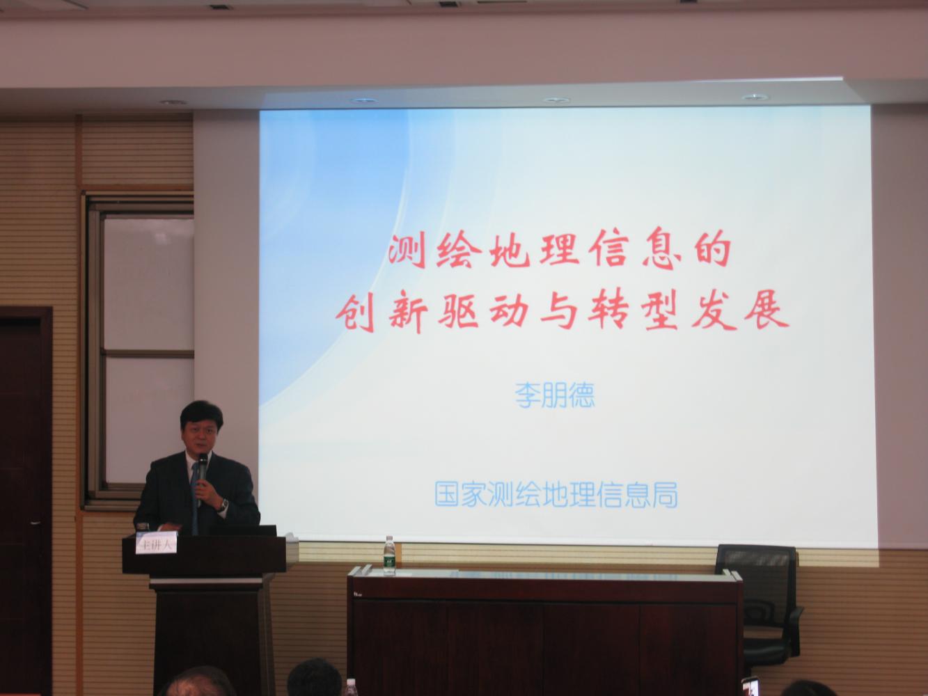信息楼0212室成功举行,特邀全国政协常委、国家测绘地理信息局副局长李朋德博士做主题报告:地理信息的创新驱动与转型发展。国家测绘地理信息局科技与国际合作司燕琴副司长应邀参会与大家交流。来自全省测绘地理信息领域的高等学校、科研院所和企事业单位的代表100余人参加了报告会。