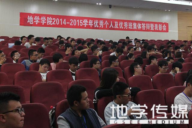 14~15年度优秀集体及个人答辩表彰大会于2015年10月15日在图书馆一号报告厅如期举行,经过激烈热情的个人及集体答辩,最终评定出各级优秀个人冯君,徐友等五人,优秀集体13级地信一班,14级茅测一班等六个集体。