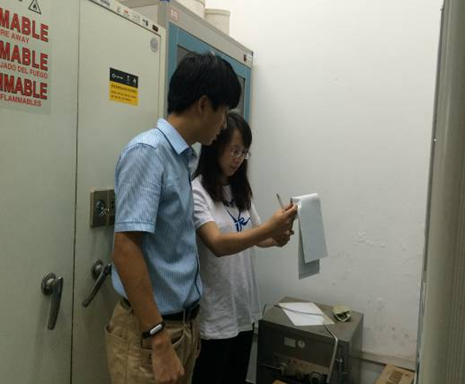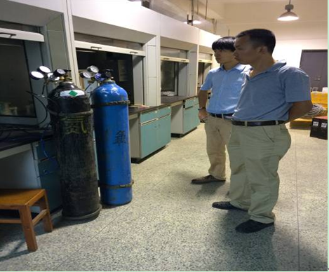 “关于开展2015年度下半年安全生产大检查和专项整治工作的通知”的相关要求,为加强我院全体师生的安全意识,确保我院安全生产工作的顺利开展,我院领导特组织各部门召开了关于安全生产排查的专题会议,并于2015年8月31日对各部门进行安全自查工作。此次重点检查了我院的危险化学品安全和消防安全工作,涉及地点包括我院各实验室和4号教学楼,检查内容包括实验室危险化学品的安全检查和隐患排查、实验室设备安全运行情况、实验室及4教消防设施落实情况、以及我院各部门的防火、防盗、防汛、电气设备及易燃易爆物品等安全措施落实到位情况。此次安全自查工作中发现了一些安全问题和安全隐患,在及时上报各部门负责人的同时提出了整改方案,并对师生进行了安全宣传。