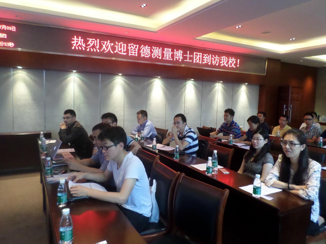 2015年7月9—10日,受教育部“春晖计划”和我院联合资助,由德国地学中心、斯图加特大学、汉诺威大学、柏林工业大学的研究员和博士生组成的留德测量博士交流团一行七人来我院进行学术交流。7月9日,我院测绘学科青年教师和博士生与留德测量博士交流团成员联合举行了大地测量学与测绘工程专题学术交流研讨会;7月10日我院为留德测量博士团成员介绍了我院测绘学科人才需求和学校人才引进相关政策等。