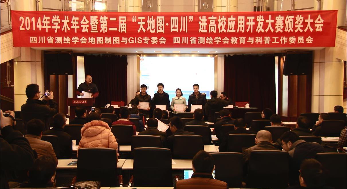 1月16日,四川省测绘学会地图制图与GIS专业委会学术年会暨第二届“天地图·四川”进高校应用开发大赛颁奖大会举行。每日大赛