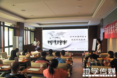 活动在轻松愉悦的氛围中展开。首先,研究生班长通过PPT展示给定议题:如何提升研究生班级的凝聚力和集体荣誉感;研究生班级如何提升学术氛围;如何加强班风建设。并就自己的工作经验做讨论交流。来自2012级研究生数学班的文永明班长率先展示了第三个议题。他向大家介绍了班级构建情况,阐述了他们班级怎样从党建、数学科研、数学夏令营、文体活动四个方面加强班风建设,展示了其班级近年来在学术上的获奖情况。在他的幻灯片中,我们看到了丰富多彩的党支部特色活动、数学科研活动、数学助教活动。他精彩的演讲博得了大家的阵阵掌声。随即,大家围绕班级凝聚力、班风建设、数学建模等方面踊跃提问。文永明班长对老师和同学的提问一一详细作答。接下来,来自遥感、马克思列宁主义、测绘、地质、环境、法学专业的班长也作了非常出彩的发言,同学们热情持续高涨,大家都积极思考、提问,班长们面对大家的疑问,认真作答。