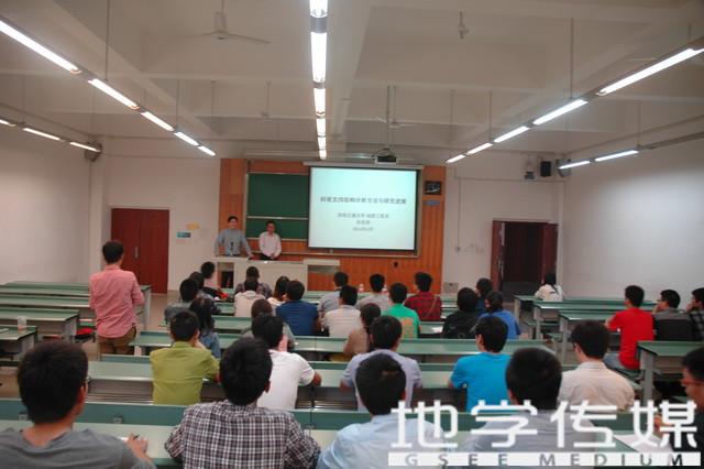 下午2点,报告会正式开始。首先由朱军教授热情洋溢地为我们讲述了三维地理信息系统、虚拟地理环境、时空建模与可视化、地理协同技术与方法等学科前沿知识。之后,由肖世国教授为我们讲述了岩土力学、地质灾害防治工程及地震岩土工程方面的知识。最后刘丹教授为我们讲述了城市垃圾处理理论与技术与工程水环境效应及其控制的内容。三位教授都讲得十分有趣,生动形象,引人入胜,同学们也听得津津有味。期间,同学们踊跃提问,与三位教授热烈交流、探讨,教授们也都非常详尽地回答了同学们的疑问。下午5点,在一片掌声中,本次报告会顺利结束。