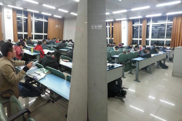 13级测绘、地质、遥感、地信专业的学生以班级为单位平均每周三次集体自习,班委积极组织,查自习出勤率,维护自习纪律,学习氛围浓厚。