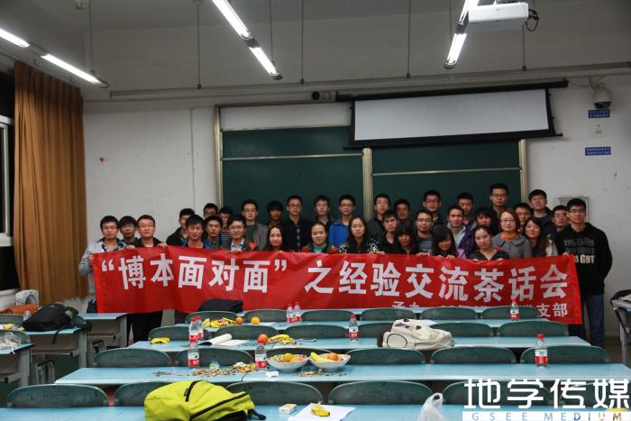 不同年级不同专业的本科生同学积极参与。为了更好地和本科生们进行交流,13级博士班不仅组织了本班同学参加活动,还特地邀请了地质、测绘、环境3个不同专业不同方向的6位博士生师兄与本科生们面对面交流。活动采用按专业分组讨论的茶话会形式,以便针对性地解决不同专业同学的问题进行多角度全方位的讲解。